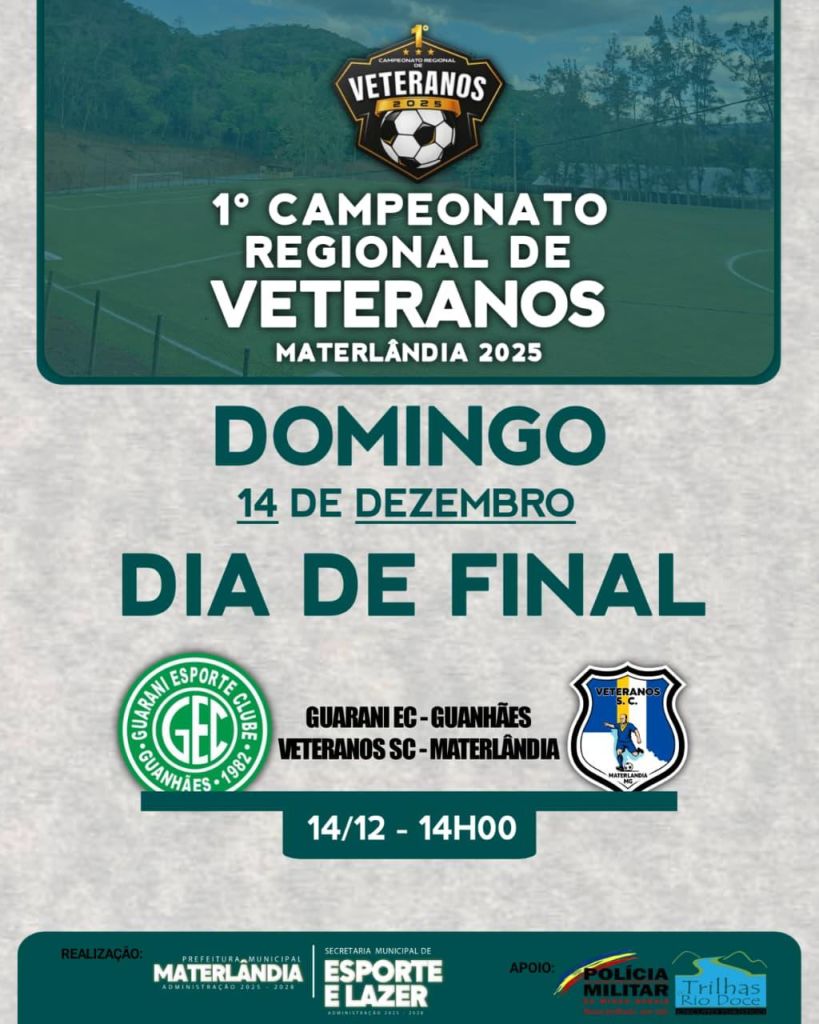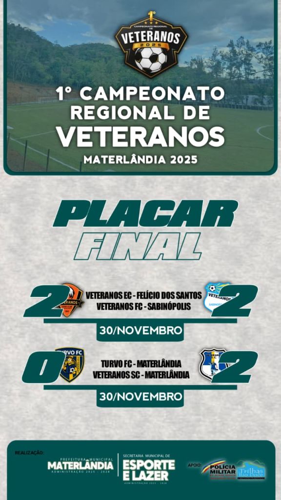 No dia 15 de novembro, teve início o 1º Campeonato de Veteranos de Materlândia, realizado no Complexo Esportivo do Bicame, reunindo atletas e torcedores em uma tarde de muita emoção e espírito esportivo.