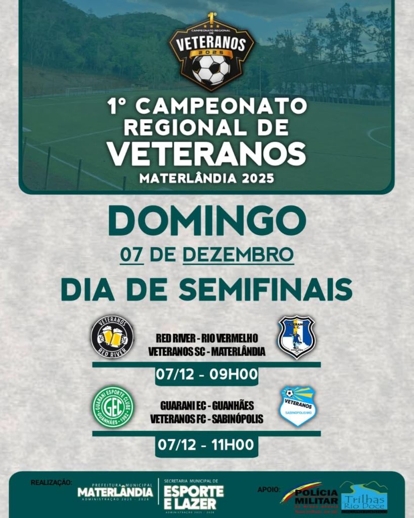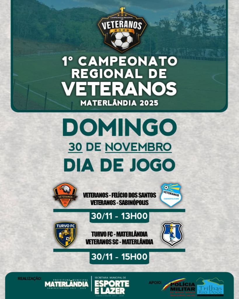 No dia 15 de novembro, teve início o 1º Campeonato de Veteranos de Materlândia, realizado no Complexo Esportivo do Bicame, reunindo atletas e torcedores em uma tarde de muita emoção e espírito esportivo.